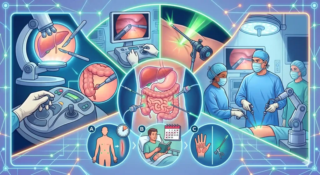 Complete recovery typically takes 1–2 weeks, compared to 4–6 weeks for open surgery.